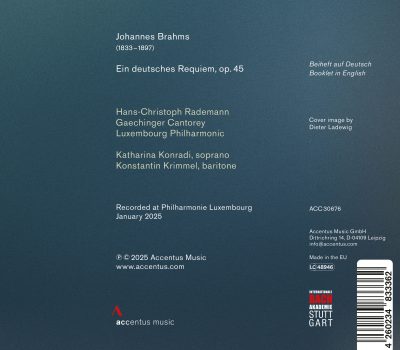 This powerful recording from the Philharmonie Luxembourg brings together the choir of the renowned Gaechinger Cantorey and the Luxembourg Philharmonic under the musical direction of Hans-Christoph Rademann for an emotionally charged interpretation of Johannes Brahms’ Ein deutsches Requiem. Featuring acclaimed soloists Katharina Konradi (soprano) and Konstantin Krimmel (baritone), this performance offers a deeply human and musically refined experience of one of the most important choral works of the 19th century.